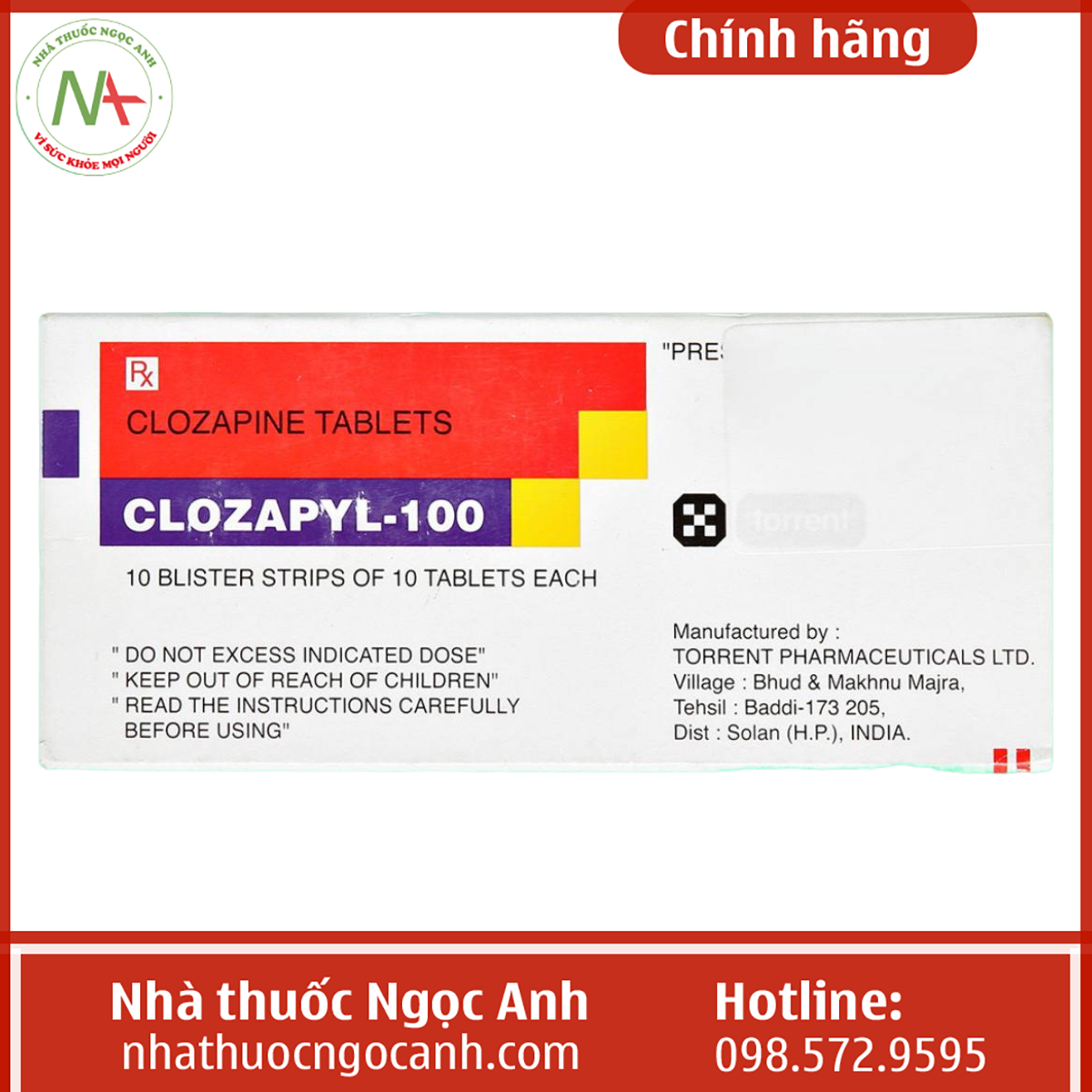 Thuốc Clozapyl-100 có thành phần chính là Clozapin do Torrent Pharmaceuticals Ltd sản xuất thuốc thường được sử dụng trong điều trị rối loạn tâm thần.