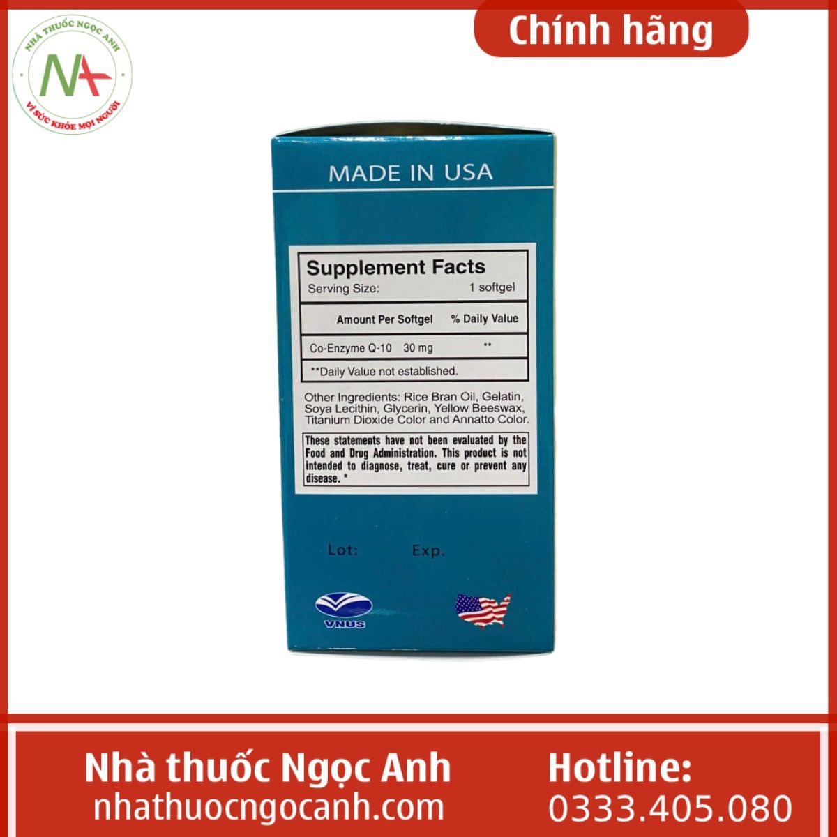 - Co-Enzyme Q-10 30mg có tác dụng giúp hạn chế quá trình lão hóa và tốt cho tim mạch.