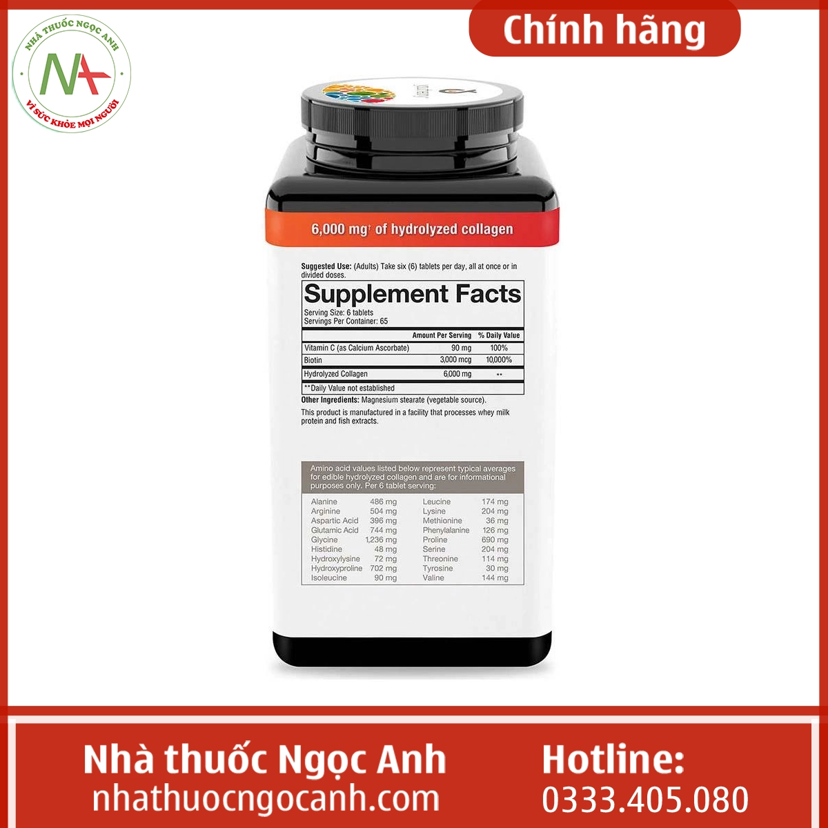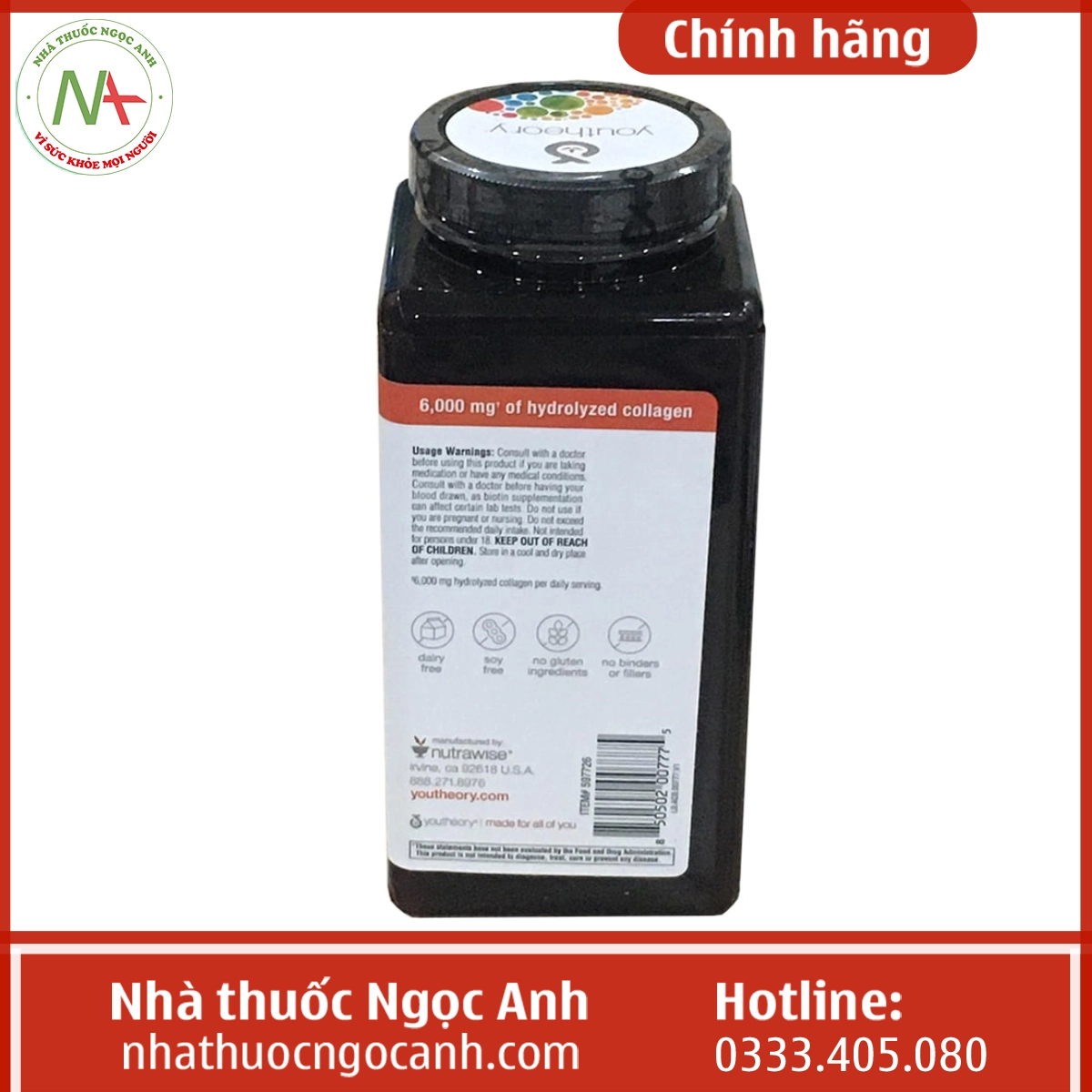 Các thành phần có trong Collagen + Biotin Youtheory bao gồm: