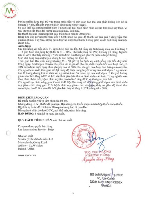 3. Tờ hướng dẫn sử dụng thuốc Coveram 10mg/10mg. Tải bản PDF tại đây.
