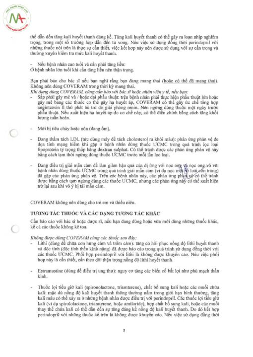 Lưu ý: Coveram 10mg/10mg là dạng thuốc phối hợp không thích hợp để làm thuốc khởi trị tăng huyết áp.