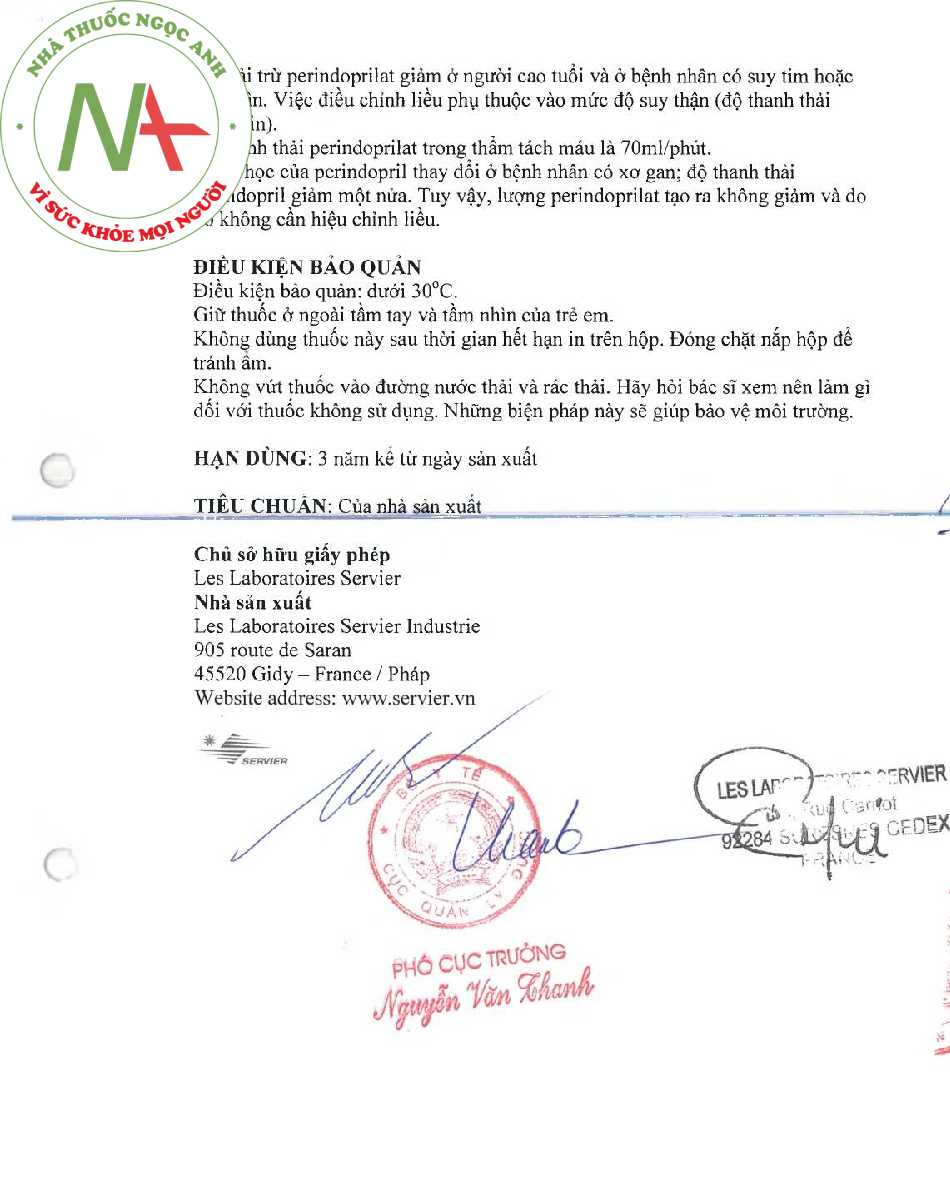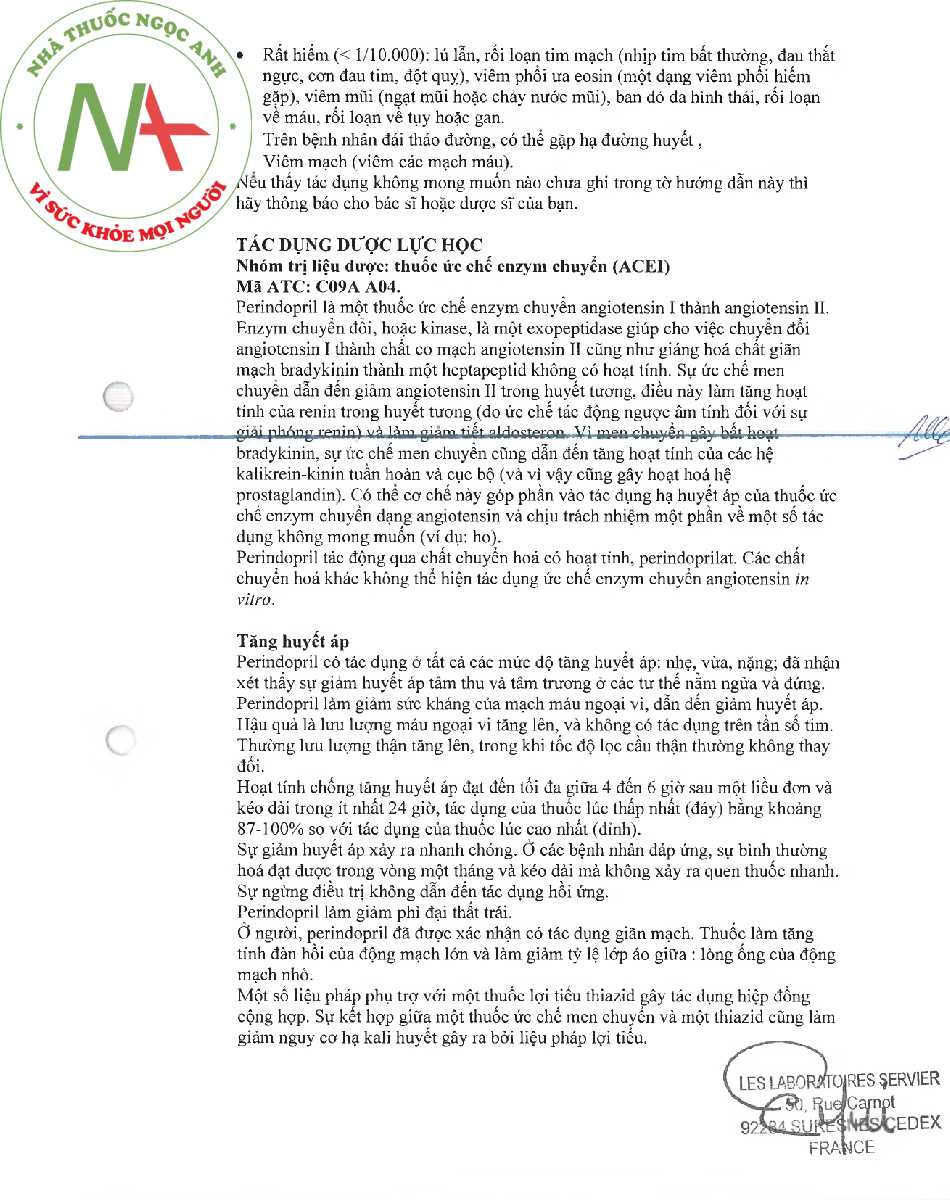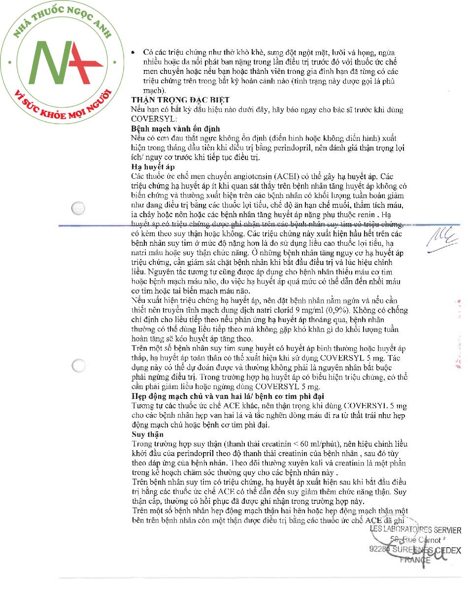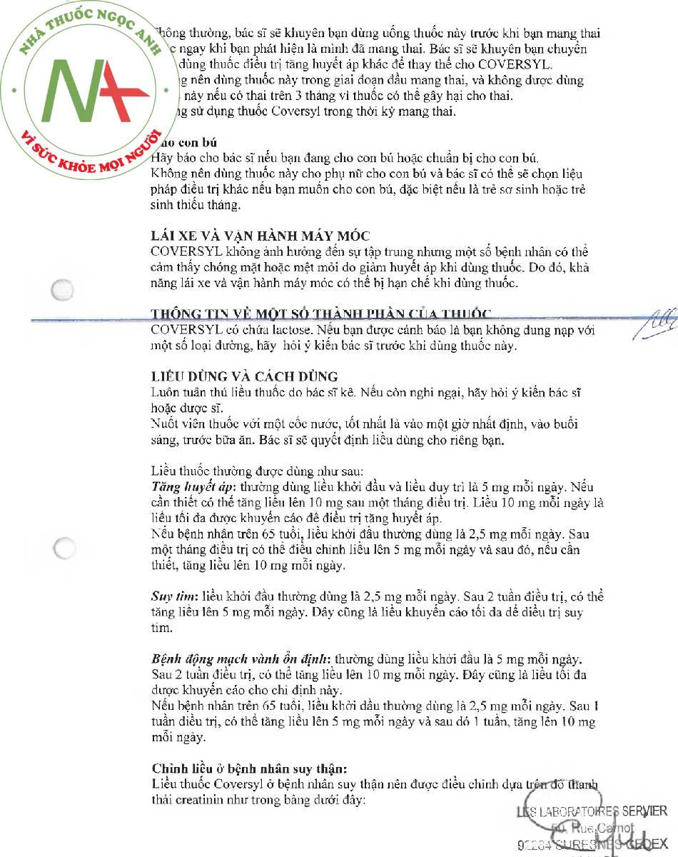 Tờ hướng dẫn sử dụng thuốc Coversyl 5mg. Xem bản đầy đủ Tại Đây