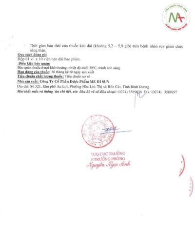 - Nhà sản xuất: Công ty cổ phần dược phẩm Me Di Sun.