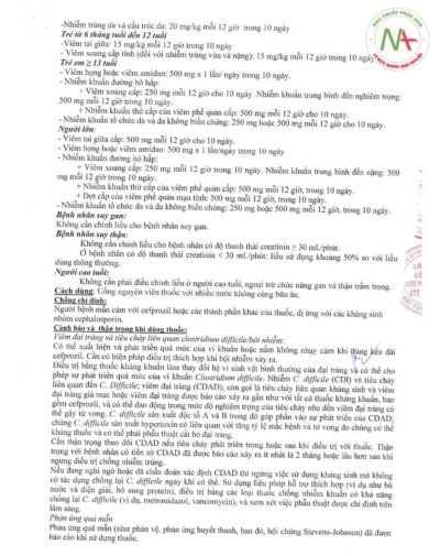 - Bệnh nhân viêm xoang cấp từ vừa đến nặng dùng 15mg/kg thuốc mỗi 12 tiếng trong vòng 10 ngày.