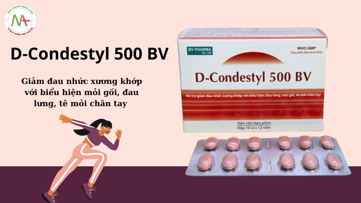 D-Condestyl 500 BV có tác dụng giảm đau nhức xương khớp với biểu hiện mỏi gối, đau lưng, tê mỏi chân tay