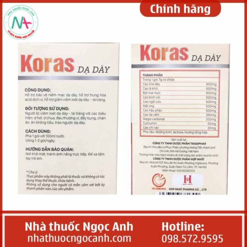 Bài viết trên là toàn bộ những thông tin về sản phẩm Dạ dày Koras mà Nhà thuốc Ngọc Anh gửi tới các bạn độc giả. Hi vọng hữu ích cho bạn!