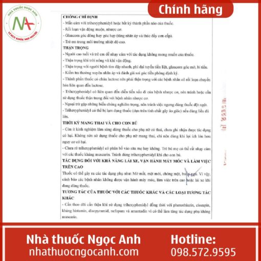 Xem thêm thuốc có cùng công dụng: Thuốc Trihexyphenidyl 2mg: Công dụng, liều dùng, giá bán