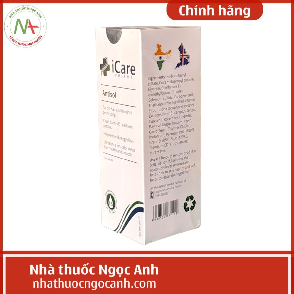 Trong mỗi chai Dầu gội Antisol iCare Pharma có chứa: