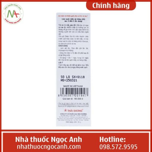 Dầu gội dược liệu Aladin trị chấy có giá bán bao nhiêu?