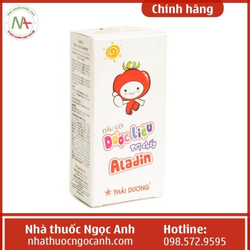 Dầu gội dược liệu Aladin trị chấy là một loại dầu gội chứa thành phần chính từ thảo dược tự nhiên dùng điều trị trứng chấy và ngăn ngừa rụng tóc một cách an toàn, hiệu quả, dùng được cho cả trẻ nhỏ và mẹ bầu.