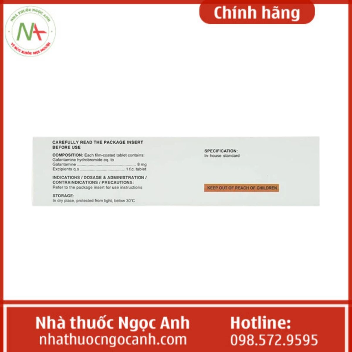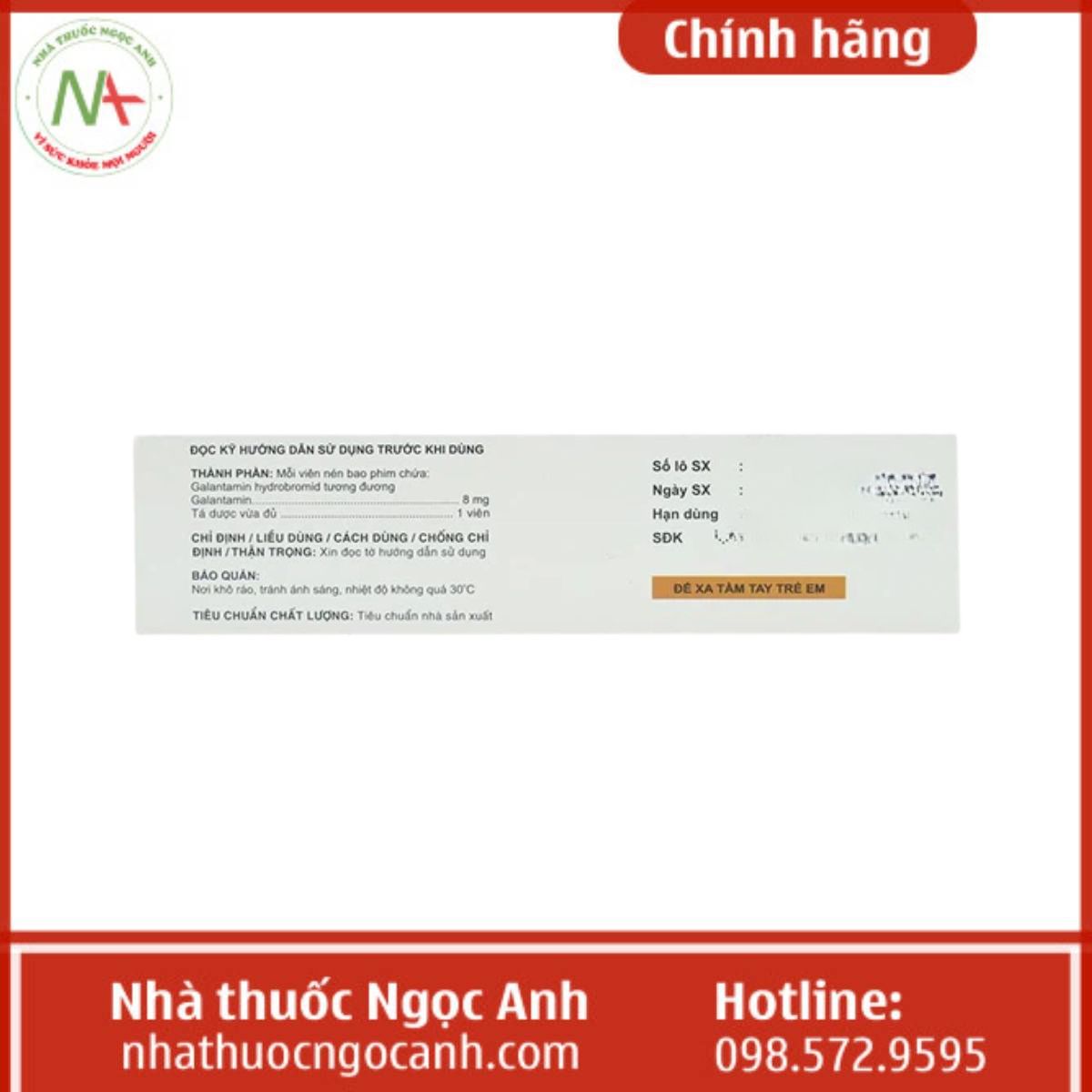 - Thuốc Galremin 8mg có chứa hoạt chất Galantamine, có tác dụng điều trị triệu chứng sa sút trí tuệ được sản xuất bởi Công ty cổ phần Pymepharco