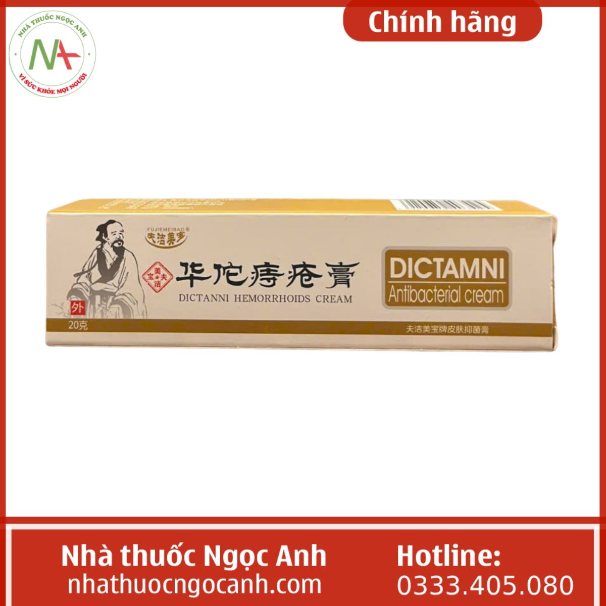 Thuốc bôi trĩ Trung Quốc Dictamni là sản phẩm được bào chế dưới dạng kem bôi, có xuất xứ Trung Quốc, có tác dụng hỗ trợ làm giảm các triệu chứng ngứa, sưng, đau do trĩ gây ra.