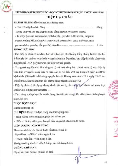 Tờ Hướng dẫn sử dụng Diệp Hạ Châu Danapha. Để tải file PDF, hãy click TẠI ĐÂY.
