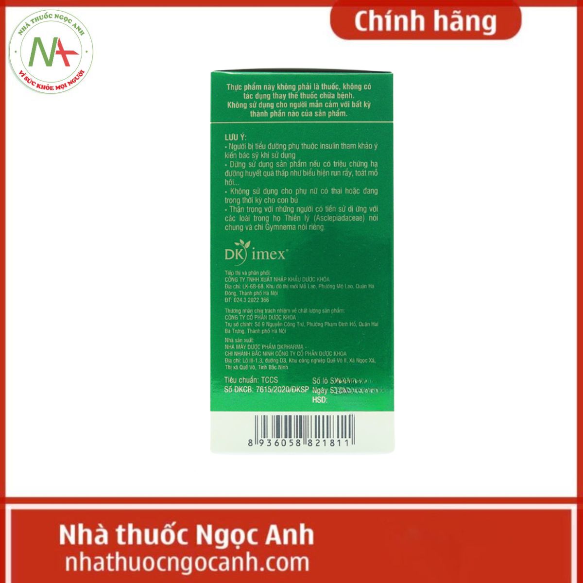 - Thận trọng khi dùng DK-Betics Gold cho người có tiền sử dị ứng với loài của họ thiên lý nói chung và chi Gymnema nói riêng