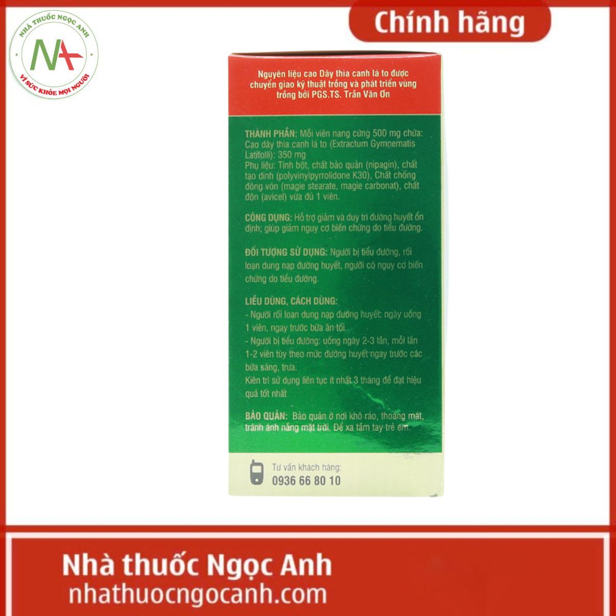Cao dây thìa canh lá to chứa nhiều thành phần hoạt chất như Gymnemic acids, amino acid, , Flavonoid, anthraquinone, phenolic,… giúp chống oxy hóa, giúp hỗ trợ tim mạch, chống viêm. Thành phần Gymnemic acids trong dây thìa canh lá to có tác dụng giảm hấp thu đường, giúp giảm tiêu thụ đường, giảm cảm giác thèm ngọt, tăng cường enzyme chuyển hóa insulin và ức chế enzyme gluconeogenesis, cải thiện lipid máu, thúc đẩy giảm cân, bảo vệ gan thận, hỗ trợ sức khỏe tổng thể