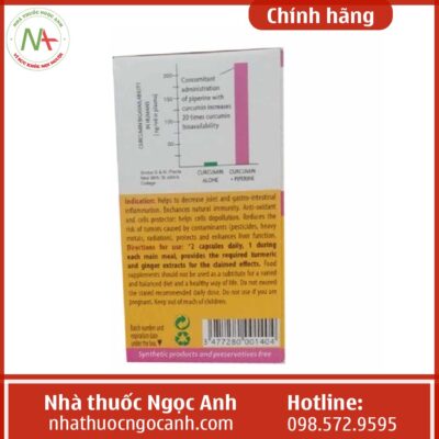 - Chiết xuất Turmeric 316 mg tương đương turmeric 9500mg, trong đóCurcumin có hàm lượng 300 mg.