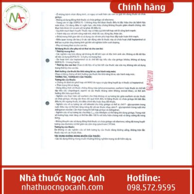 - Cao ginkgo biloba với hàm lượng 14mg.