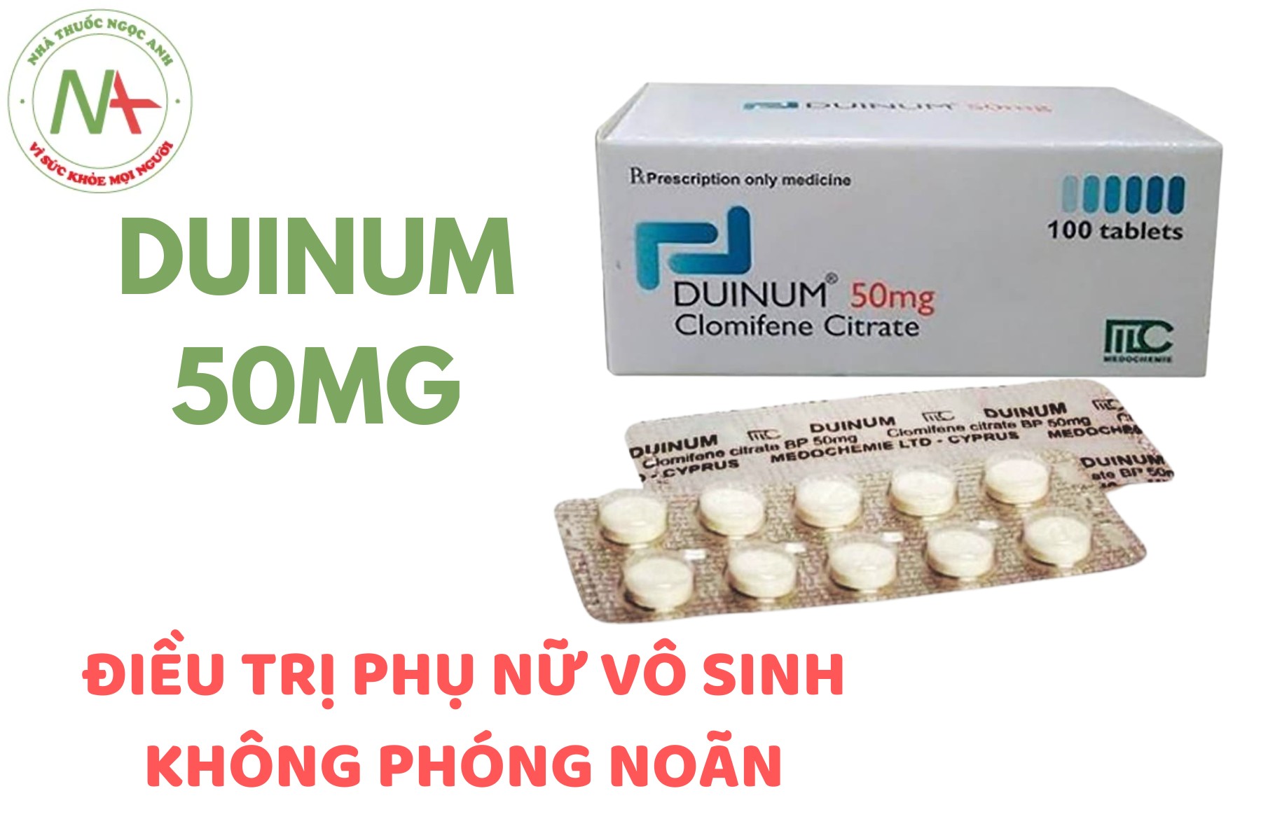 Thuốc Duinum 50mg được chỉ định trong điều trị vô sinh ở nữ do rối loạn chức năng buồng trứng, không phóng noãn. Phải loại trừ các nguyên nhân vô sinh khác hoặc điều trị đầy đủ trước khi sử dụng clomifen.