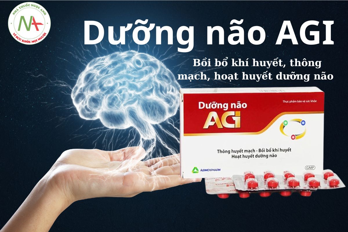 Dưỡng não AGI có tác dụng hỗ trợ bồi bổ khí huyết, thông mạch, hoạt huyết dưỡng não, cải thiện triệu chứng rối loạn tập trung, cải thiện tình trạng suy giảm trí nhớ, tâm trạng trầm cảm, ù tai, chóng mặt, nhức đầu trong thiểu năng tuần hoàn máu não