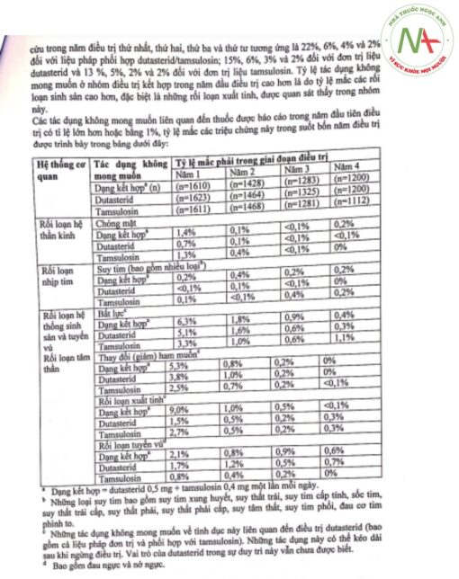 | Tương tác | Verapamil hoặc diltiazem | -Tăng nồng độ Dutasterid trong huyết thanh lên 1.6 – 1.8 lần. |