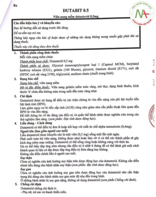 Liều dùng – Cách dùng thuốc Dutabit 0.5