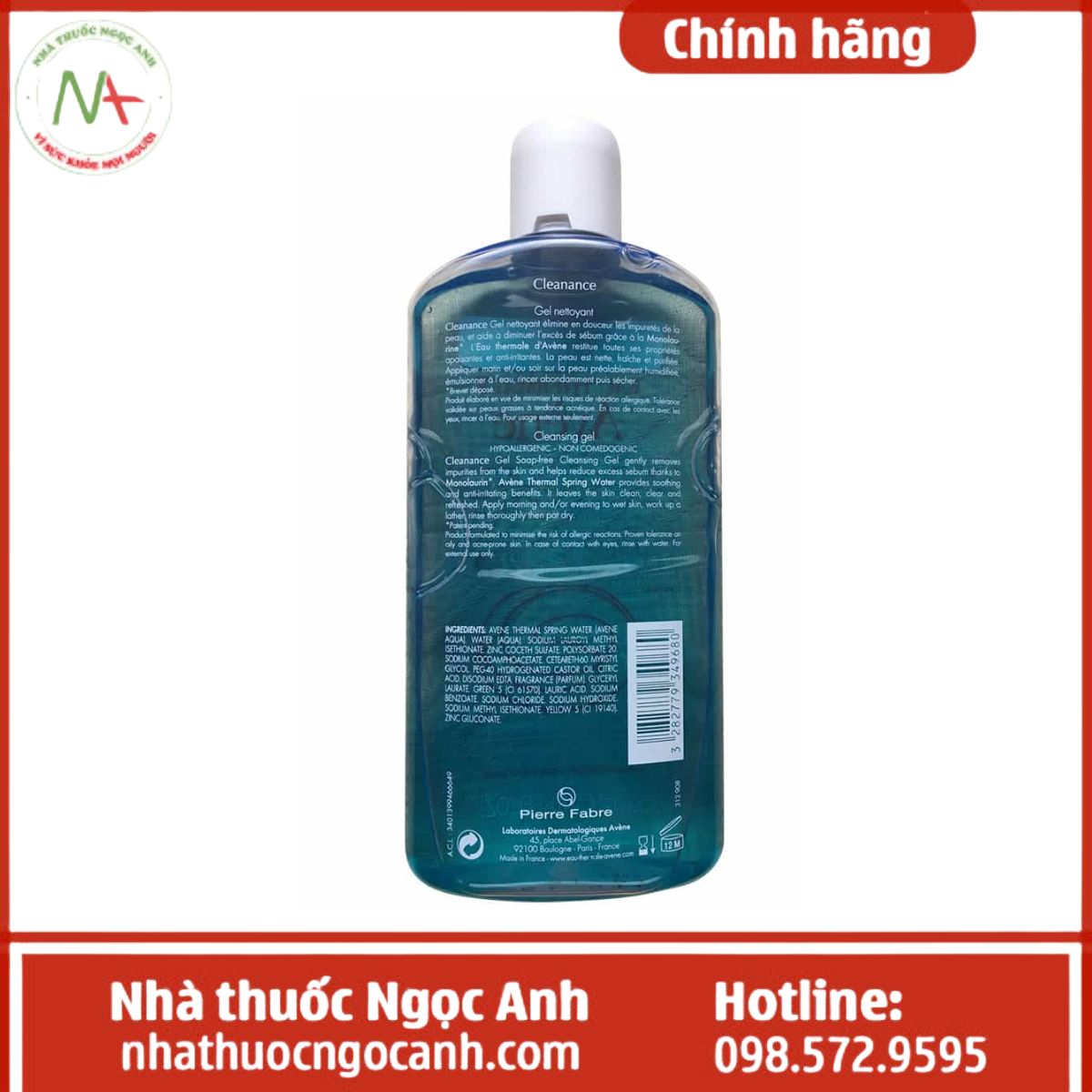 Eau Thermale Avène Cleanance Cleansing gel 200ml có chứa các thành phần: