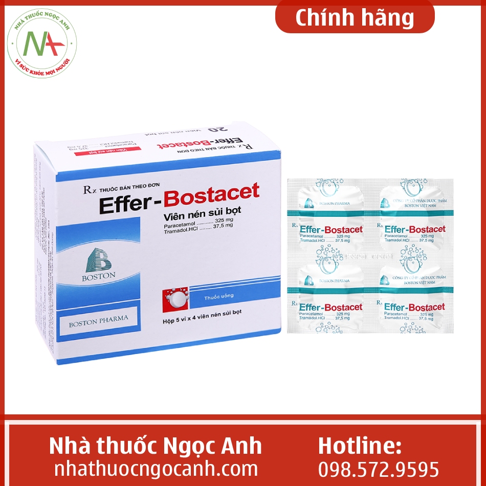 - Effer-Bostacet có chứa 2 hoạt chất Paracetamol + Tramadol có tác dụng tốt trong chỉ định các cơn đau mức độ trung bình đến nặng.