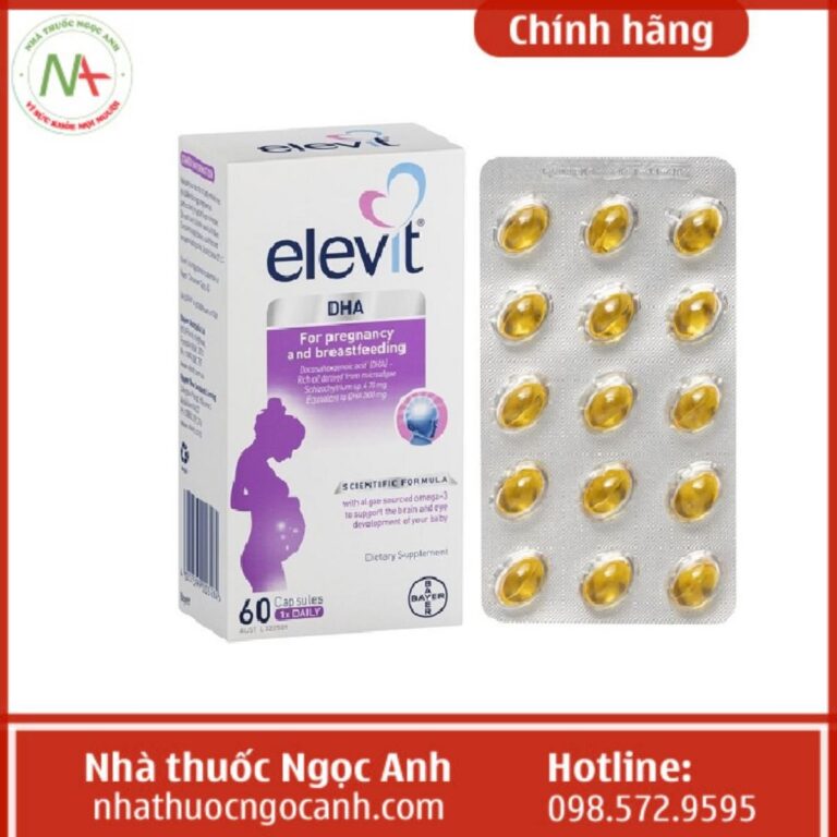 - Elevit pre-conception & pregnancy có chứa các thành phần Acid Folic, Calci, Iodine, Kẽm, Vitamin B1, có tác dụng bổ sung vitamin và khoáng chất cho phụ nữ có thai và cho con bú, được sản xuất bởi Bayer