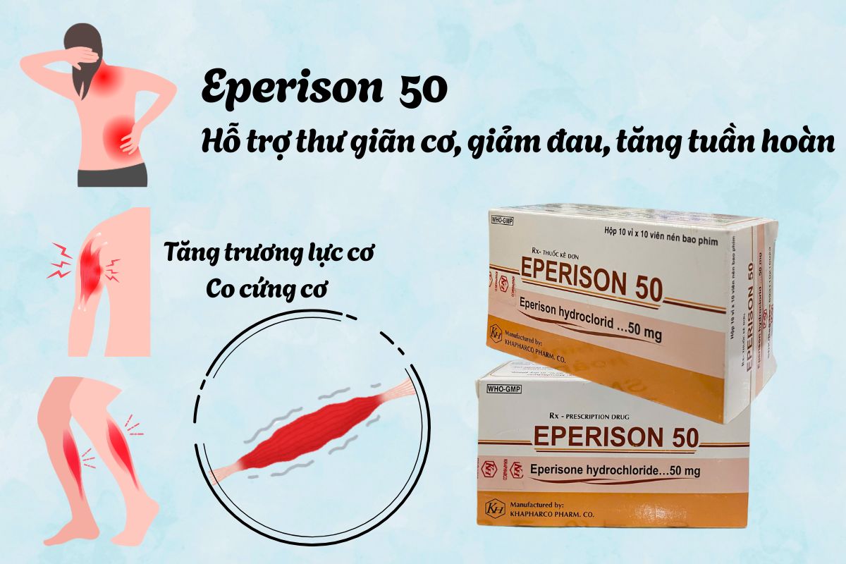 Thuốc eperison 50 giãm đau cơ, co cứng cơ, tăng tuần hoàn đến cơ
