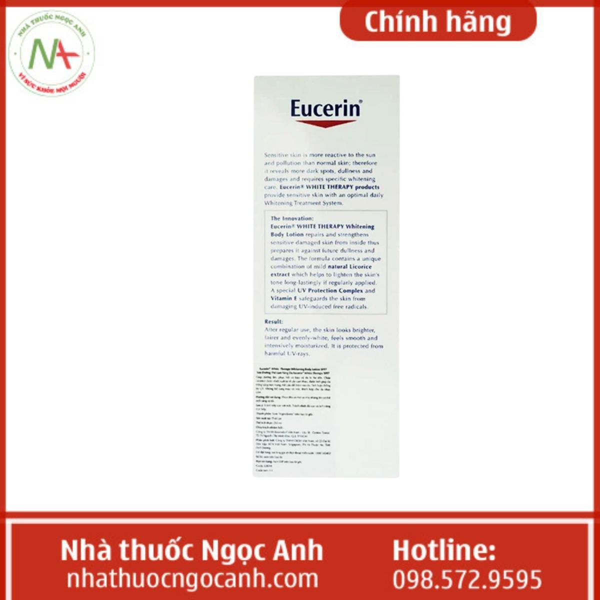 - Eucerin White Therapy Whitening Body Lotion không phải là thuốc, không có tác dụng thay thế thuốc chữa bệnh.