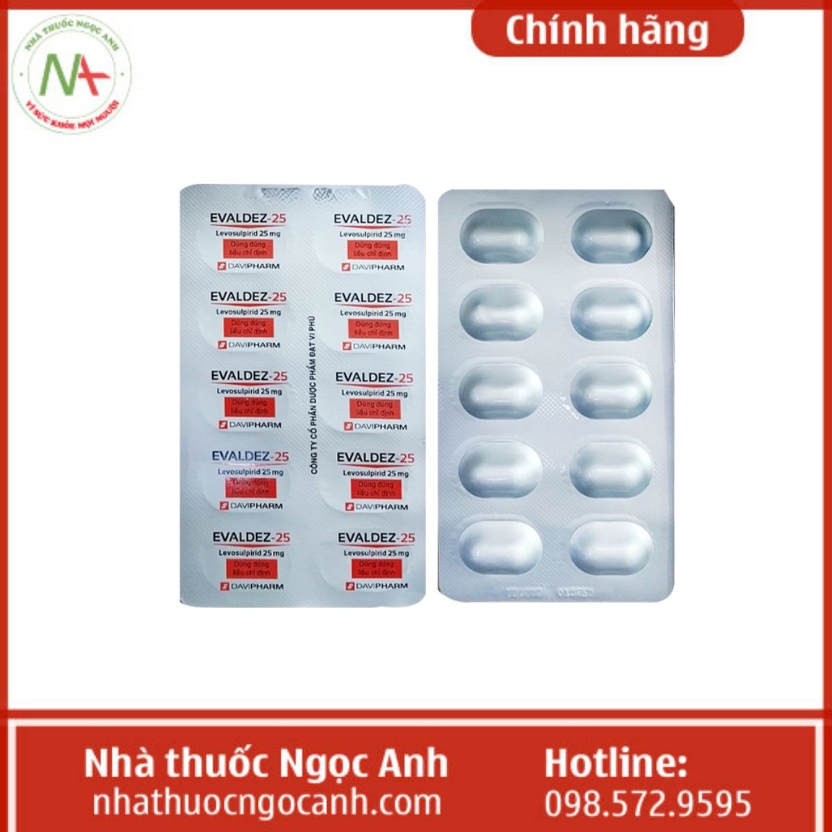 - Thuốc Evaldez-100 có chứa hoạt chất Levosulpirid, có tác dụng điều trị tâm thần phân liệt được sản xuất bởi Công ty Cổ phần Dược phẩm Đạt Vi Phú