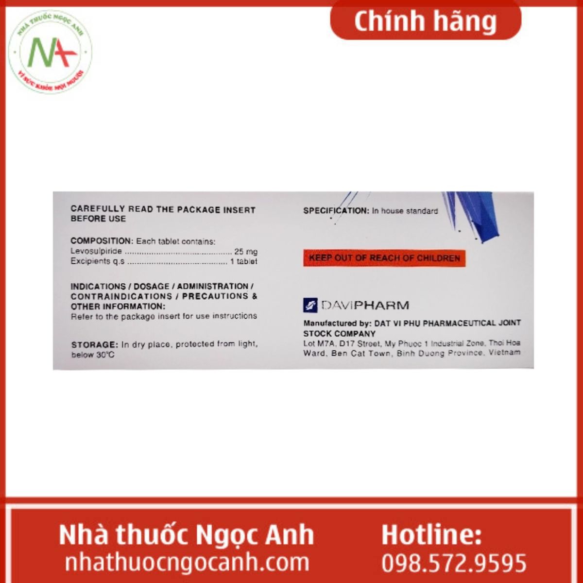 - Nhà sản xuất: Công ty Cổ phần Dược phẩm Đạt Vi Phú