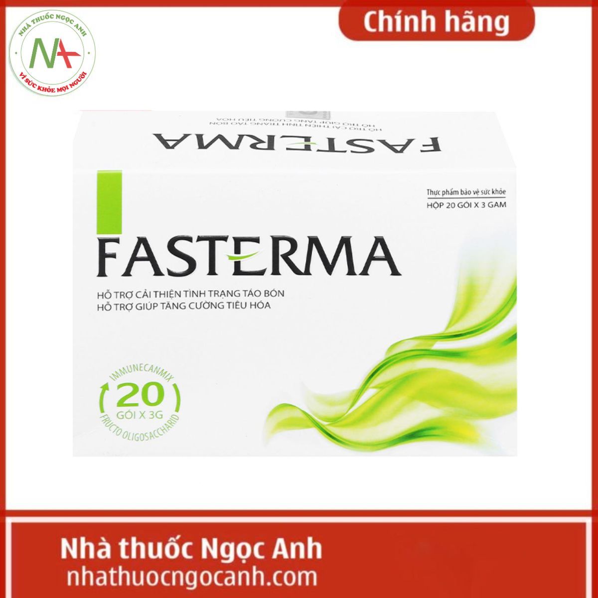 Fasterma có tác dụng bổ sung chất xơ, lợi khuẩn giúp tăng cường tiêu hóa, cải thiện tình trạng táo bón, giảm triệu chứng rối loạn tiêu hóa do loạn khuẩn đường ruột