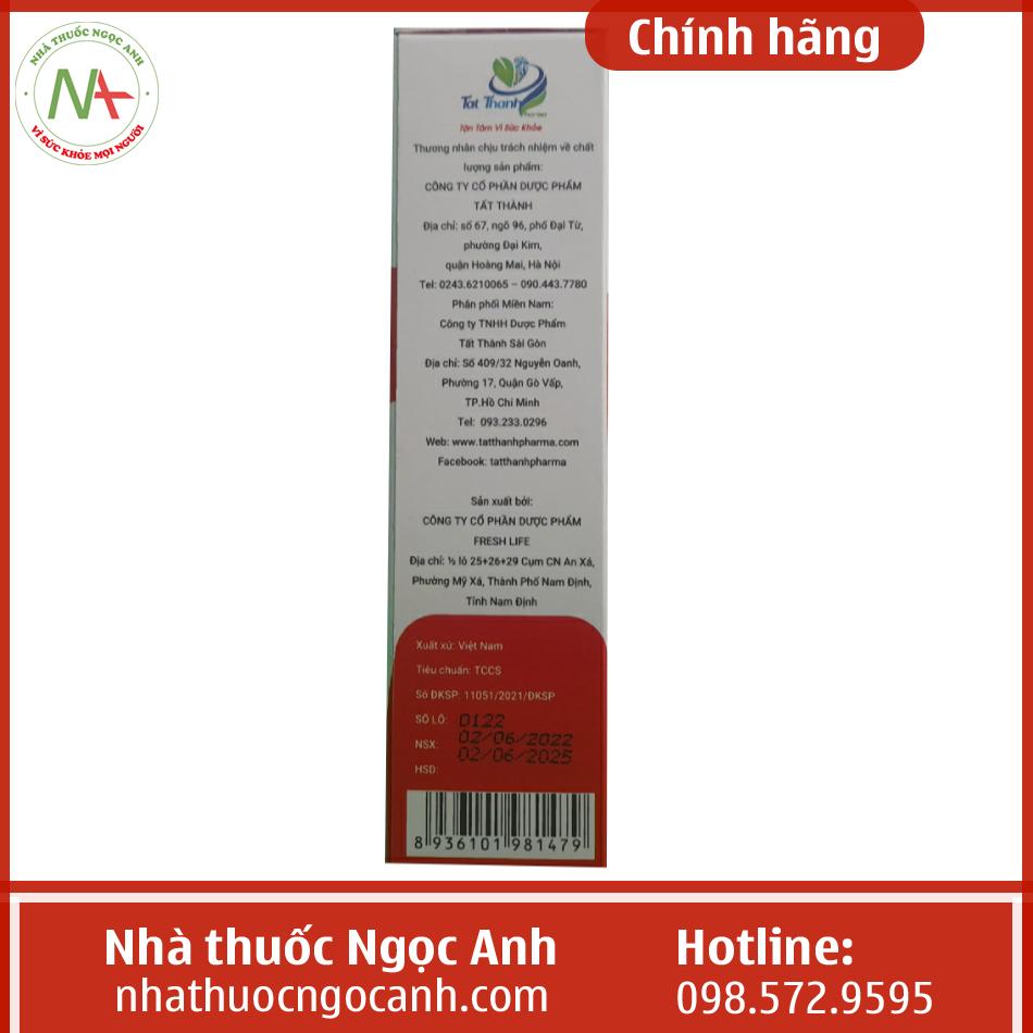 Nhà sản xuất: Công Ty Cổ Phần Dược Phẩm Tất Thành.