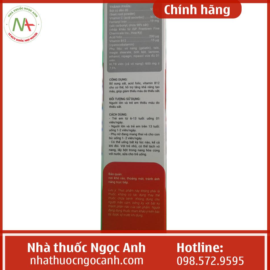 - Bột Củ dền đỏ với hàm lượng 30mg.