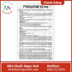 Tờ hướng dẫn sử dụng thuốc Fexophar 60mg. Tải về tại đây.
