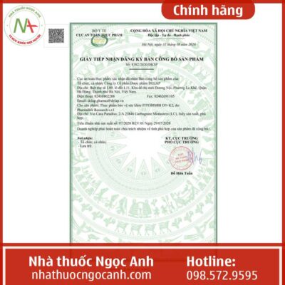 - Fitobimbi D3+K2 được Cục An toàn Thực phẩm – Bộ Y tế cấp phép an toàn lưu hành trên thị trường Việt Nam