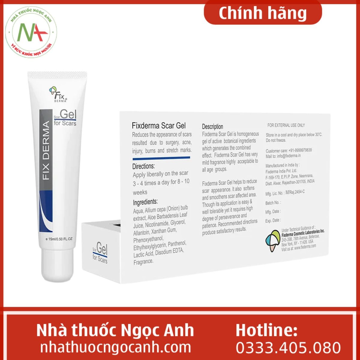 Hiện Fix Derma For Scar Gel được Nhà thuốc Ngọc Anh nhập bán chính hãng từ nhà sản xuất, do đó chúng tôi cam kết sản phẩm đến với khách hàng là những mặt hàng chất lượng, nói không với hàng giả