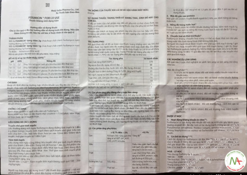 Thuốc Fosmicin for I.V.Use 1g có tốt không?
