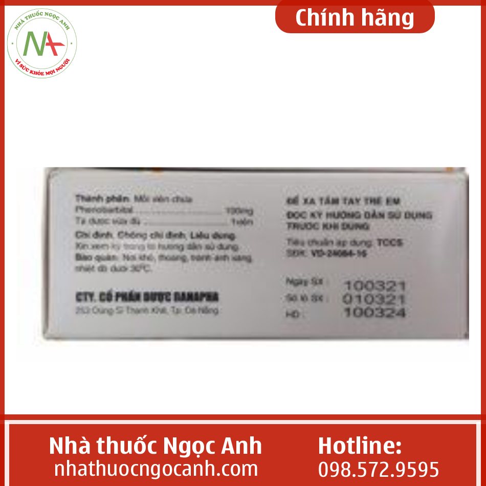 - Phenobarbital với hàm lượng 100mg.