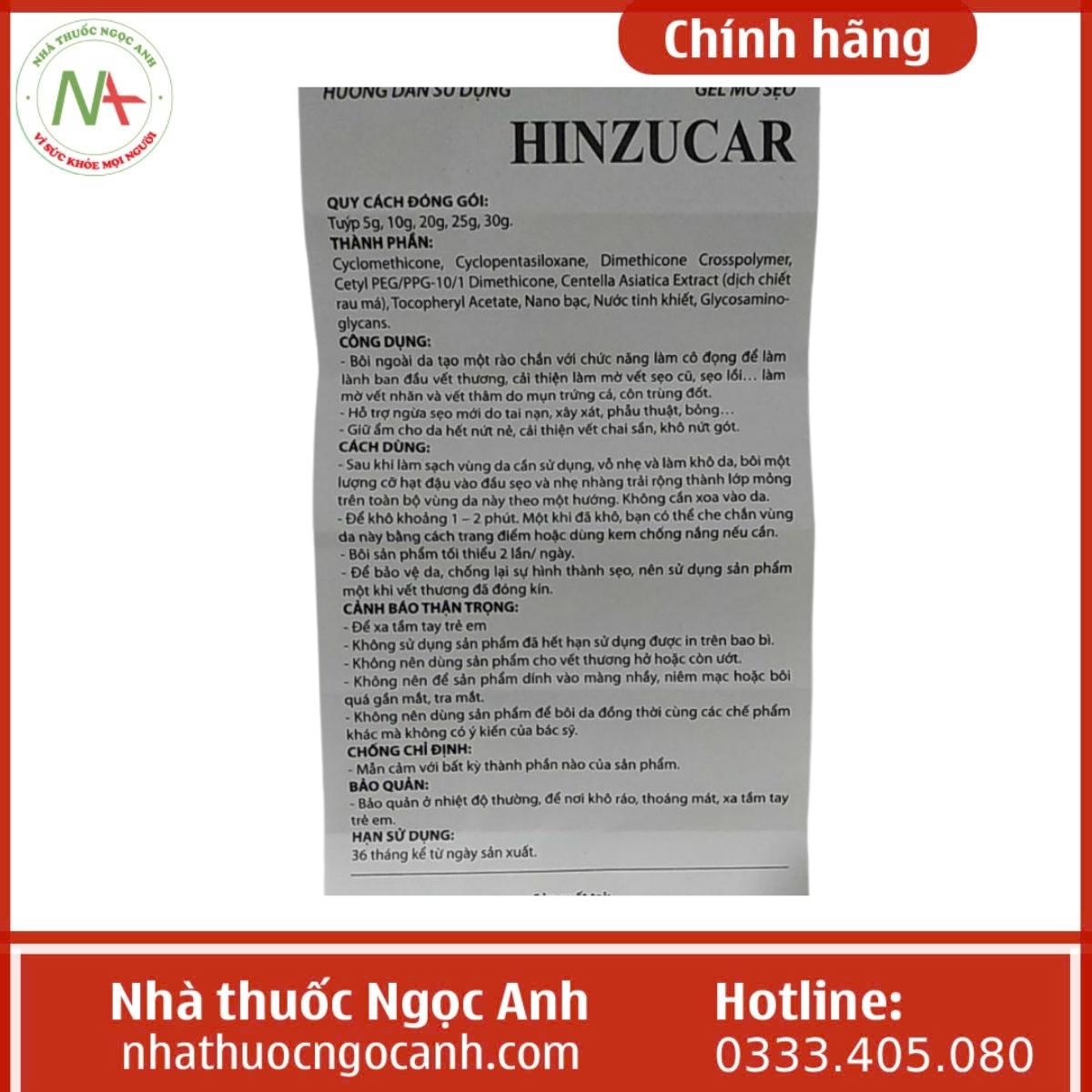 Với mỗi tuýp gel mờ sẹo Hinzucar gồm có: