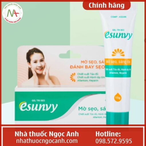 Gel trị sẹo Esunvy là sản phẩm được phân phối độc quyền bởi Công ty cổ phần Dược phẩm Tín Phong. Sản phẩm có khối lượng 15g được tổng hợp từ các loại dược liệu từ thiên nhiên có công dụng hỗ trợ làm mờ các vết sẹo do vết thương, bỏng, côn trùng cắn, làm giảm sự hình thành sẹo từ các loại mụn trứng cá, ngoài ra còn có công dụng dưỡng ẩm và làm mềm da. Sản phẩm được Công ty cổ phần Dược phẩm Gia Nguyễn sản xuất và có số lưu hành là 21/18/CBMP-BN.