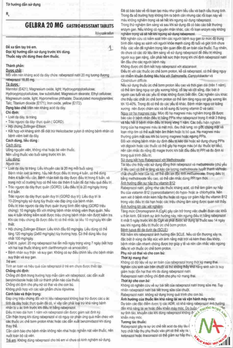Thuốc Gelbra 20mg có thành phần chính là Rabeprazol, được sử dụng trong điều trị loét dạ dày – tá tràng, trào ngược dạ dày – thực quản rất hiệu quả.