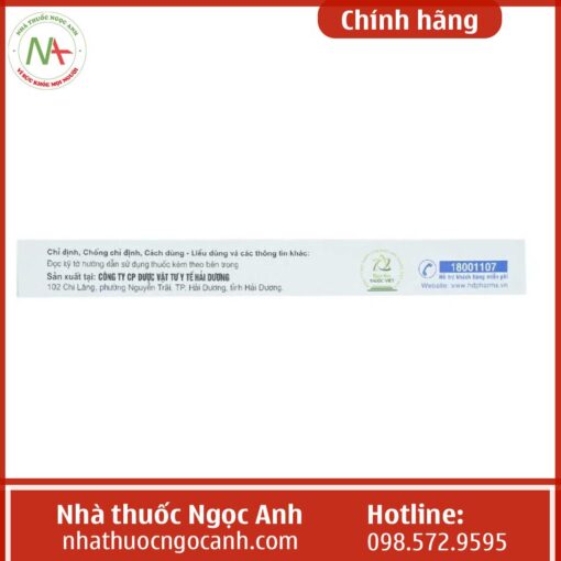 Nhà sản xuất: Thuốc được sản xuất bởi Công ty cổ phần dược vật tư y tế Hải Dương.