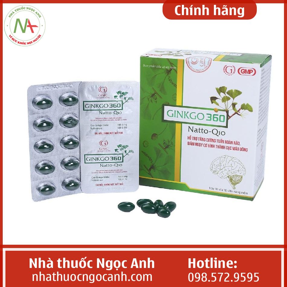 - Ginkgo 360 Natto-Q10 hiện nay chỉ có trên thị trường với quy cách đóng gói duy nhất là hộp 10 vỉ x 10 viên nang mềm.