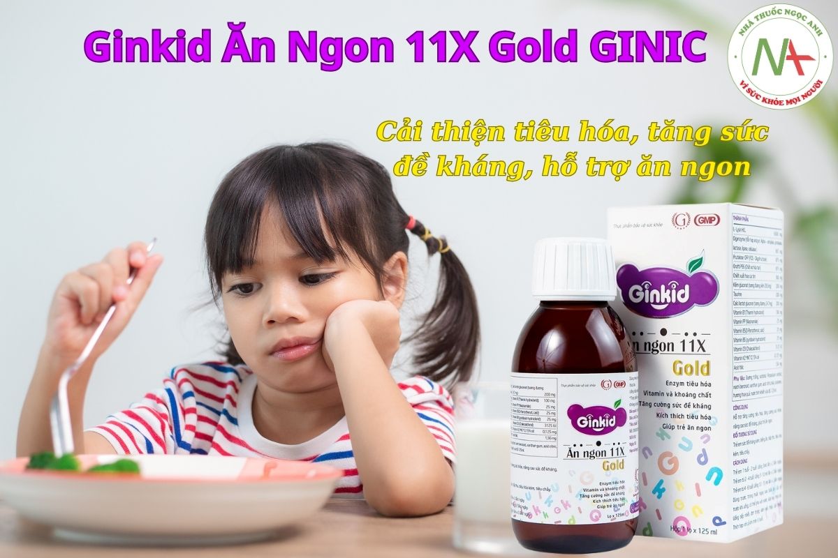 Siro Ginkid Ăn Ngon 11X Gold GINIC cải thiện tiêu hóa, tăng sức đề kháng, hỗ trợ ăn ngon