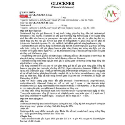 Thuốc Glockner-10 là thuốc của công ty dược phẩm Đạt Vi Phú sản xuất. Thuốc có chứa thành phần methimazole và được chỉ định cho các trường hợp có vấn đề liên quan đến tuyến giáp như bị cường giáp,…
