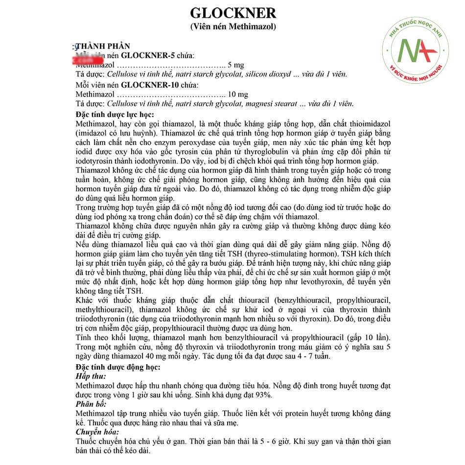 Thuốc Glockner-10 là thuốc được sử dụng cho các bệnh nhân bị các biểu hiện của bệnh cường giáp và các vấn đề khác có liên quan đến tuyến giáp. Thông tin của sản phẩm trên thị trường đã có nhiều nhưng vẫn còn chưa đầy đủ. Hôm nay nhà thuốc Ngọc Anh (nhathuocngocanh.com) sẽ giới thiệu đến quý vị bạn đọc các thông tin cần phải biết của thuốc Glockner-10 qua bài viết dưới đây.