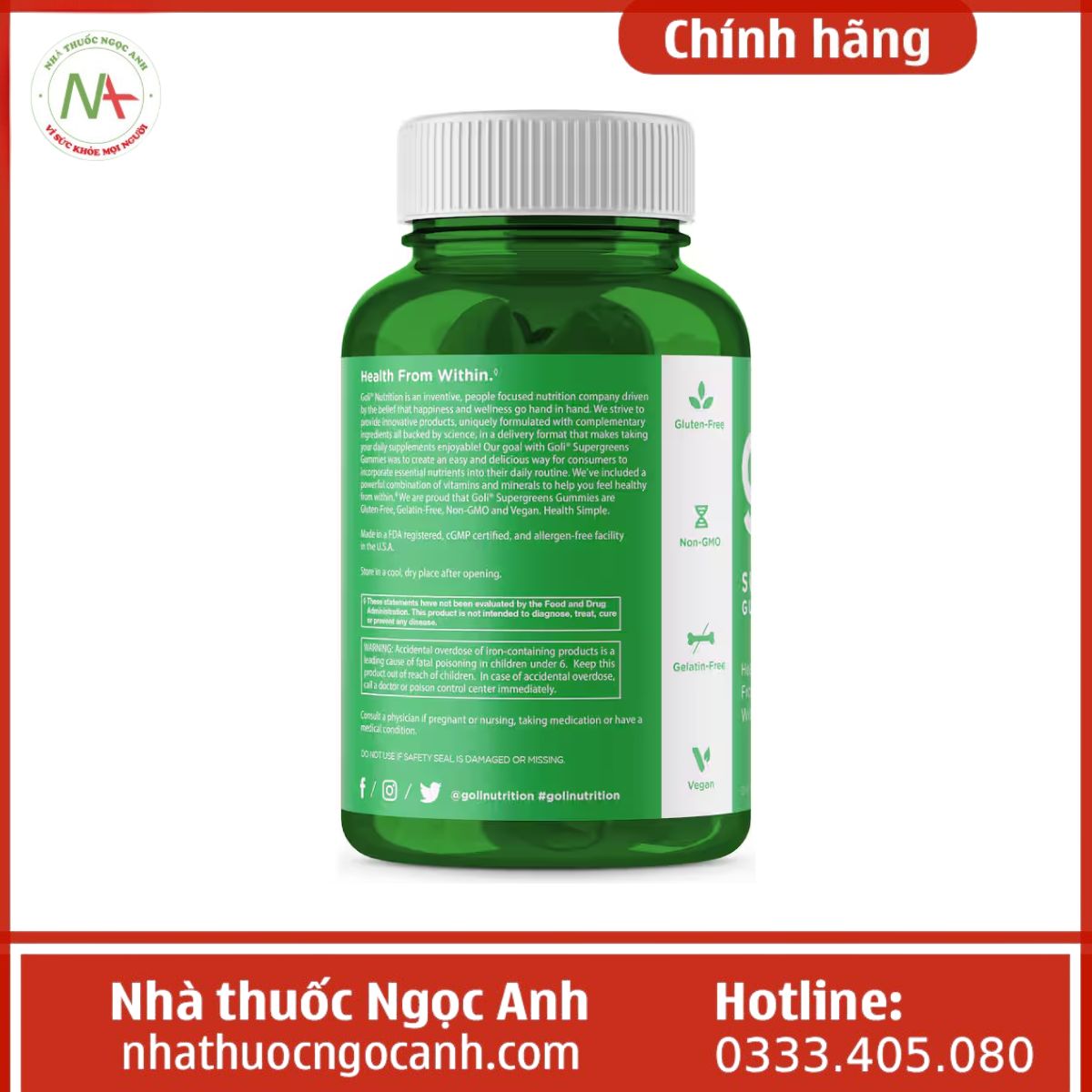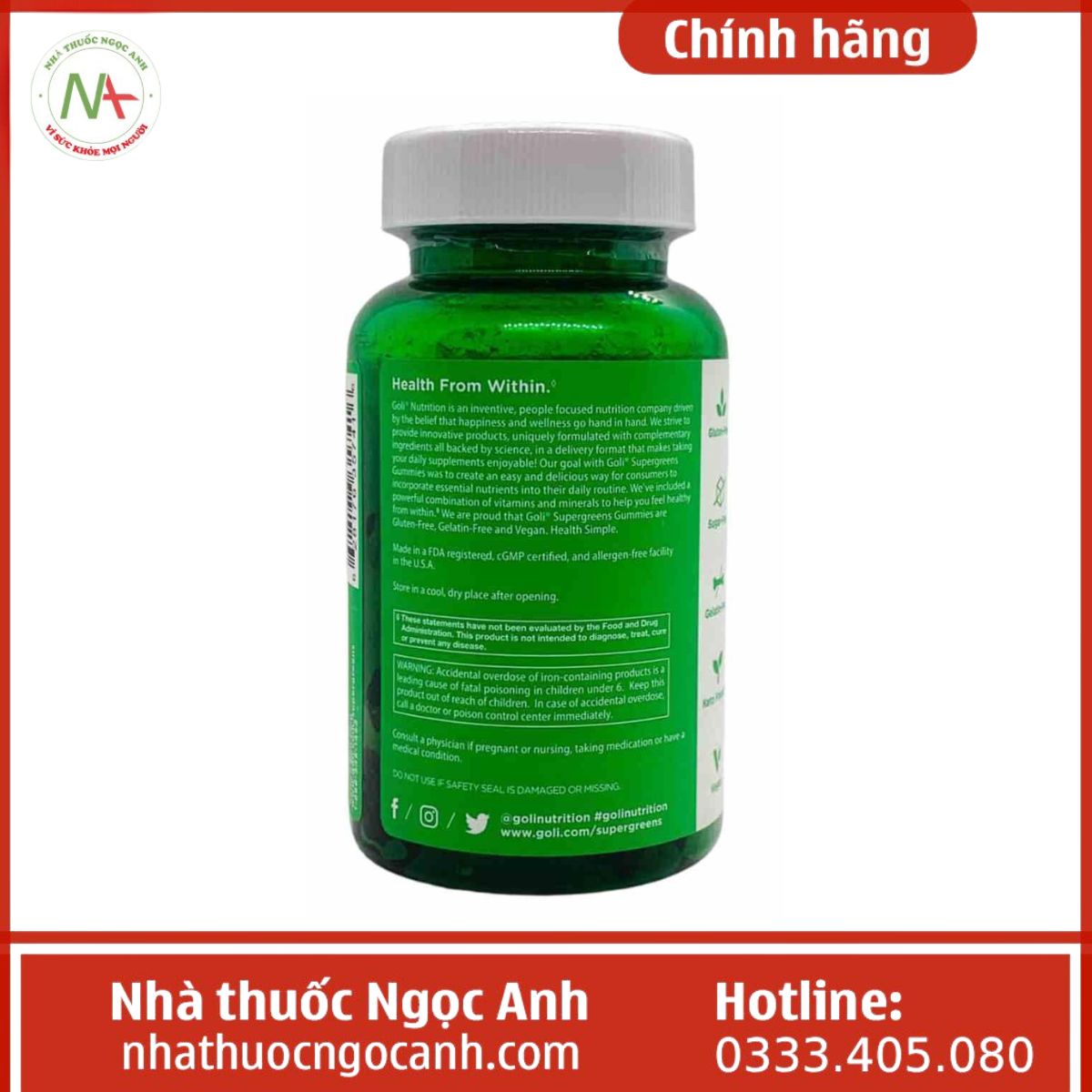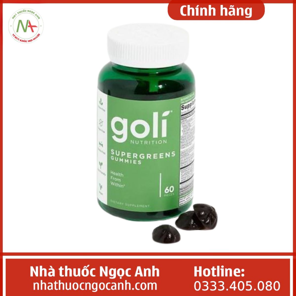 Kẹo dẻo Goli Nutrition SuperGreens Gummies là thực phẩm bổ sung, không được dùng thay thế thuốc chữa bệnh.