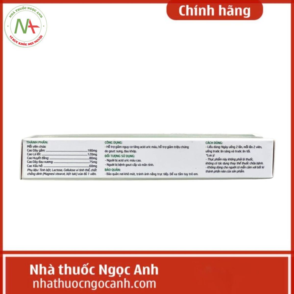 =>>> Xem thêm: Gout Acid hỗ trợ giảm acid uric máu, ngăn ngừa lắng đọng tinh thể urat tại khớp, giảm sưng đau do gout